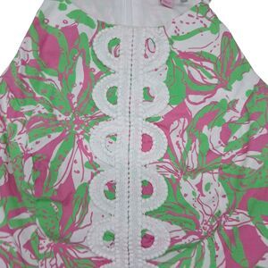 Lilly Pulitzer halter tank top womens size 4. Green pink. Sleeveless. Beach vacation colorful. Annabelle top. Forgot my trunks print. 100% cotton.