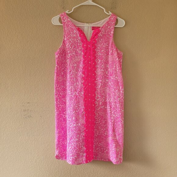 Preowned in great condition, no flaws, Lilly Pulitzer Girls See Ya Later Pink Shift Dress