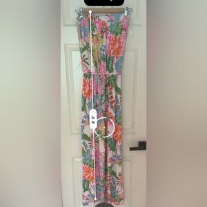Lilly Pulitzer Target Maxi Dress Nosey Posey Strapless White Pink Size Mesium