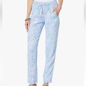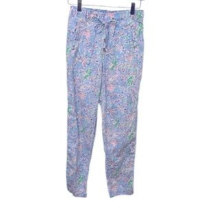 Lilly Pulitzer Taron Linen Pants Peri Blue The Turtle Package EUC Women’s Small