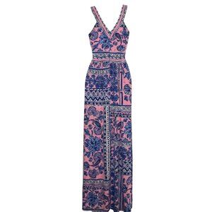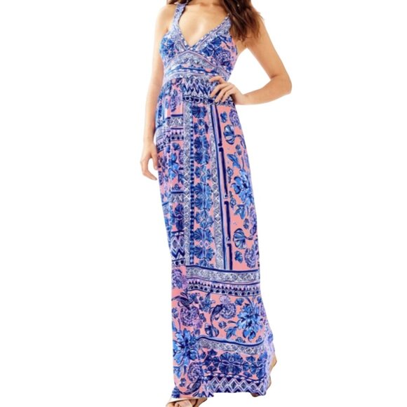 Lilly Pulitzer Taryn Maxi Dress Melon Fig Ginger Jar Sleeveless Pink Blue Rayon