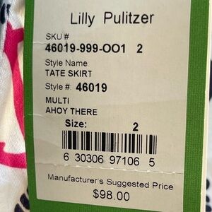 Lilly Pulitzer Tate Skirt Ahoy There Multi Pattern Size 2 New with tags