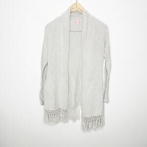 Lilly Pulitzer Tatum Cardigan Sweater Heathered Grey Metallic Fringe Tassel XS