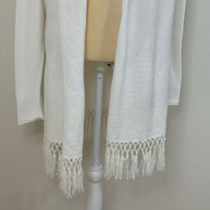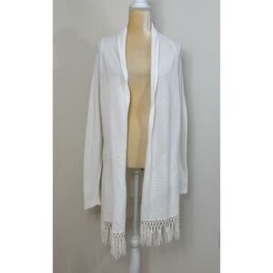 Lilly Pulitzer Tatum Long Fringe Cardigan Size L Resort White Open Front