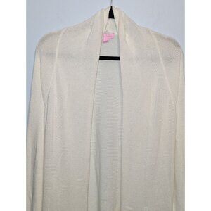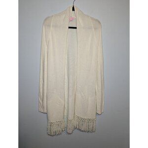 Lilly Pulitzer Tatum Long Fringe Cardigan Size L Resort White Open Front Cotton