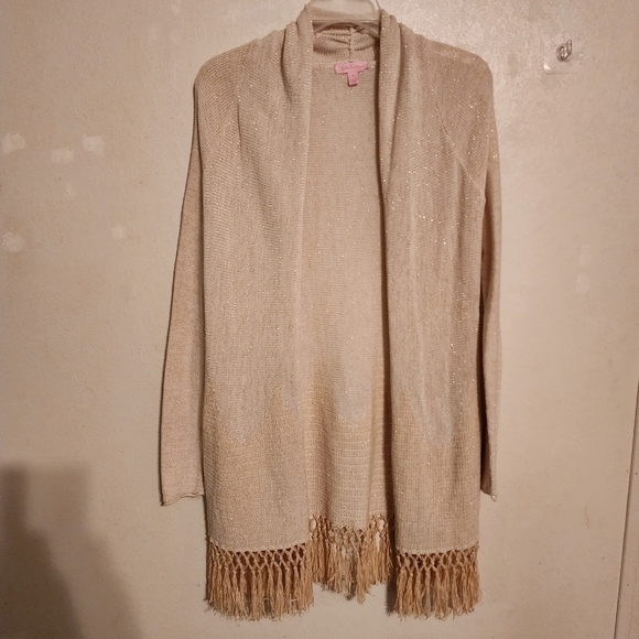 Lilly Pulitzer Tatum Long Fringe Hem Shimmer Open Cardigan Size S