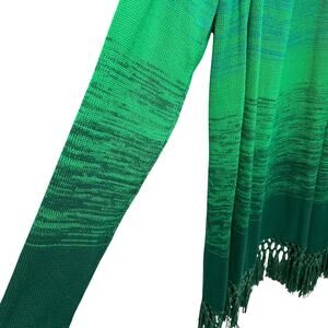 Lilly Pulitzer Tatum Ombre Cardigan Evergreen Marled Green Fringe Trim Large