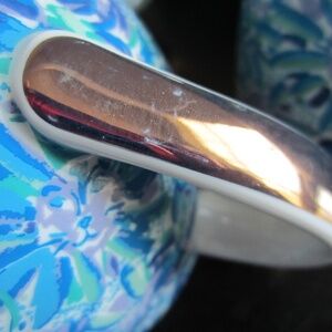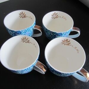 Lilly Pulitzer Tea Cups set of 4 Bule Floral Ceramic golden Handles Ssummer,