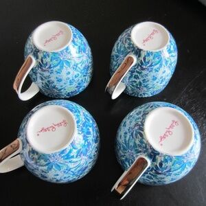 Lilly Pulitzer Tea Cups set of 4 Bule Floral Ceramic golden Handles Ssummer, Luxry