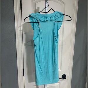Lilly Pulitzer Teal Blue Ruffle Front Tank Top Pima Cotton WOMENS SIZE XS.