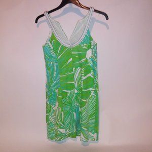 Lilly Pulitzer Tessa Dress Size 2 Shift Tropical Green White Embroidered Zip Up