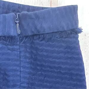 Lilly Pulitzer Textured Jacquard Fringe Trim Navy Blue Addie Shorts. The Adie Shorts from Lilly Pulitzer featured pretty textured zigzag wave waffle weave fabric. Side and back slip pockets. Fringe tassel trim detailing that wraps around the entire waistline and scalloped side seam hem. Hidden zipper closure on the side. In great condition. 100% Cotton. Size 16 in excellent condition.