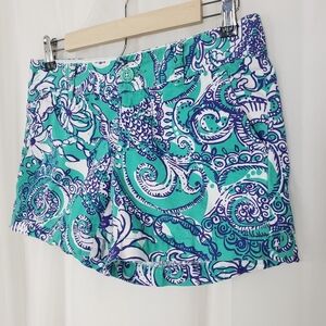 Lilly Pulitzer The Callahan Short 100% cotton teal blue white paisley size 2