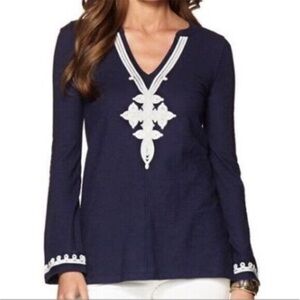 Lilly Pulitzer Thea V-Neck Navy embroidered Tunic Size Small
