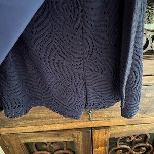 Lilly Pulitzer Tiki wrap romper. Color is true navy. Lace, long sleeves and front wrap. Very versatile!! Size medium. In excellent preowned condition!!