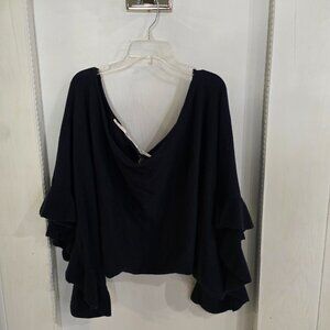 Lilly Pulitzer Tootsie Navy Blue Cotton Cashmere Tiered ruffle sleeves.Cardigan One Size
