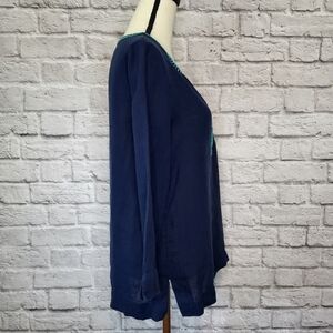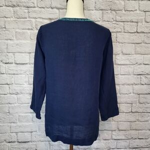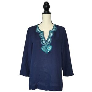 Lilly Pulitzer Top Amelia Island Blue Turquoise White Beaded Linen Tunic Size S