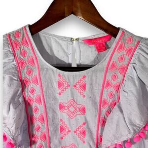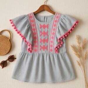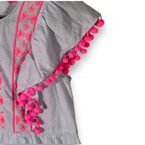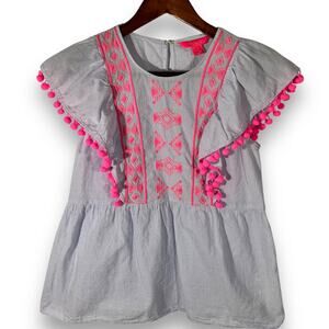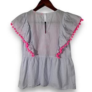 Lilly Pulitzer Embroidered Peplum Top Boho Pom Pom Flutter Sleeve XS