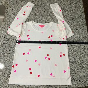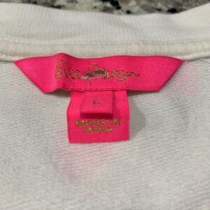 Lilly Pulitzer Women's Jansen Long Sleeve Sweatshirt in Resort White Lots Of Love Size Large.