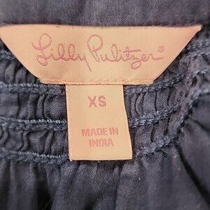 Lilly Pulitzer Top Tunic Cotton Navy Embroidered Long Sleeve "Elsa" Women's XS