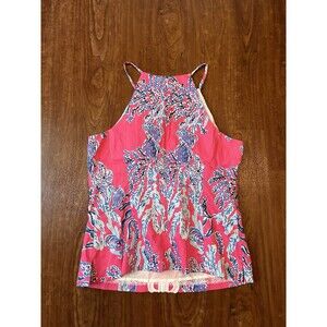 Lilly Pulitzer Top Womens 12 Capri Pink Samba Annabelle Halter Sleeveless Coral