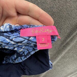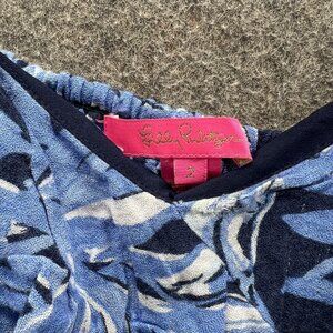 Lilly Pulitzer Top Womens 2 Blue Floral Ruffle Smocked Peplum Sleeveless Shirt