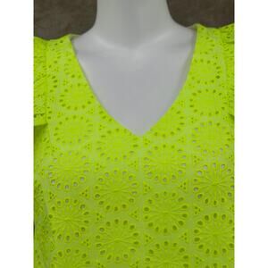 Lilly Pulitzer Top Womens XS Lina Sleeveless Eyelet Prickly Pear Yellow Summer Beach Tropical Preppy Resort Vacation Neon Geo Vibrant Embroidered Pullover Cotton Blend NWT V-Neck Cruise Sheer Lightweight