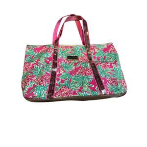 Lilly Pulitzer Tote Bag Pink Green Floral Sequin Straps Large