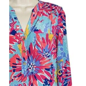Lilly Pulitzer Trippin and Sippin Elsa Silk Popover Blouse Size XS Pink Flowers