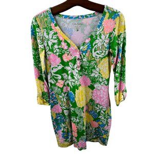 Lilly Pulitzer Tunic Dress Extra Small Multicolor Floral Pima Cotton 3/4 Sleeve