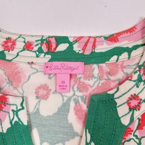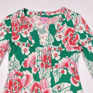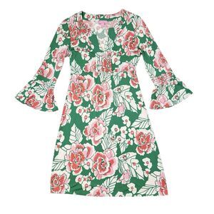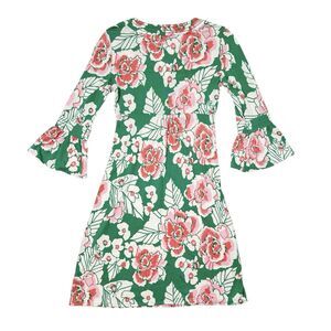 Lilly Pulitzer Twyla Dress Size XS Green Pink Floral V Neck Bell Sleeve Cocktail