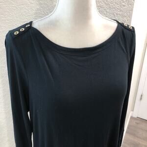 * Gold button detail at shoulder and cuff