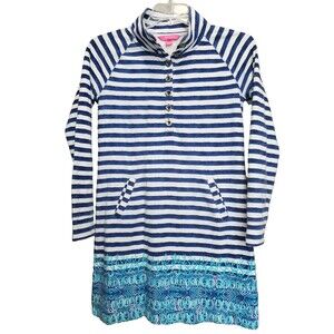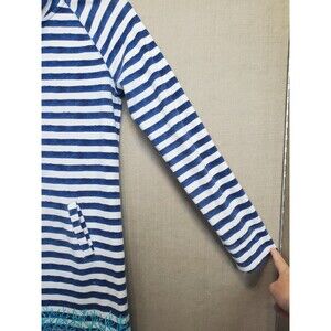 This is a Lilly Pulitzer UPF 50+ Captain Popover Dress Positano Stripe Slash Pockets Small