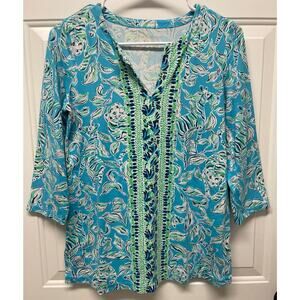 Lilly Pulitzer UPF 50+ Karina Tunic Turquoise Oasis Outta Line Size XS