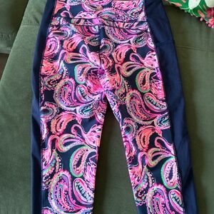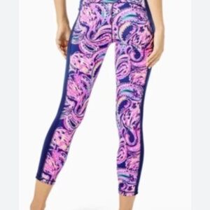 Lilly Pulitzer UPF 50+ LUXLETIC 24" Weekender High Rise Midi Legging for Women Size XXL in High Tide Navy Flock to the Top. NEW WITHOUT Tags, never worn.
