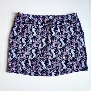 Unleash your wild side in this playful and bold skort featuring a colorful cheetah-inspired print in shades of pink, purple, and blue on a rich navy background. With its athletic fit and eye-catching pattern, this piece brings the spirit of Lilly Pulitzer to every swing, serve, or stroll.