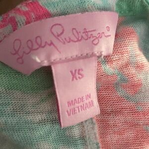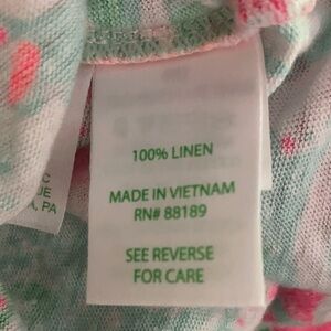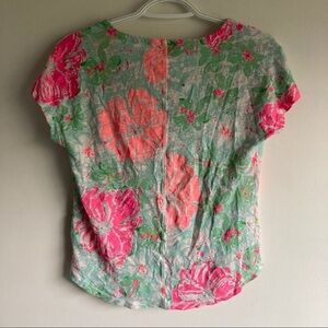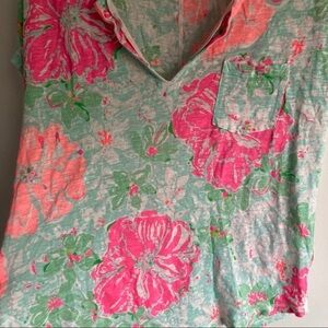 Lilly Pulitzer V Neck Floral 100% Linen Pocket Tee Style 12238 Sz XS