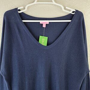 Lilly Pulitzer V Neck Sweater M Blue Silk Blend Pullover Preppy Minimalist Top