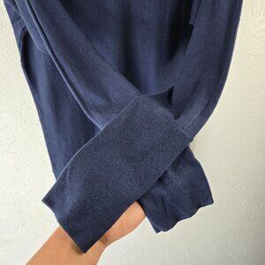 DETAILS: Pullover style. Dark blue color. Long sleeve. V neck. Regular fit.