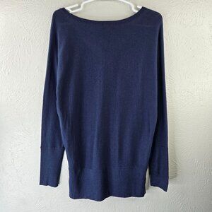 Lilly Pulitzer V Neck Sweater M Blue Silk Blend Pullover Preppy Minimalist Top (H783)
