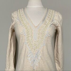 Lilly Pulitzer V-Neck 3/4 Sleeve Embellished Clarkson Dress in Cream Heather, XS