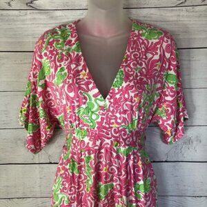 Lilly Pulitzer V-Neck Pink Green Tie Dress XS