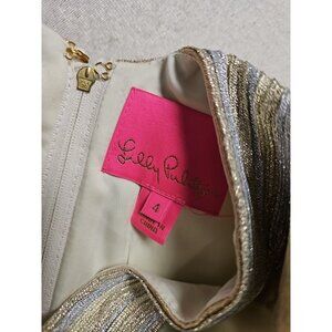 Lilly Pulitzer Valli Floral Gold Dress Size 4 Organza Brocade Sheath