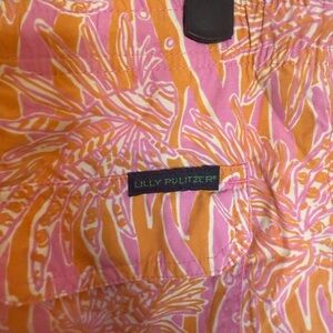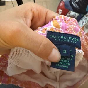 Pre owned excellent condition worn a handful of times. Really nice fish patterned swim trunks for boys. So preppy and great for summer. No elastic in waist, just waist tie. Boys size xl.