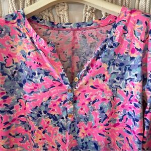 Lilly Pulitzer Vibrant Banyan Dress Size Small Coco Coral Bright Pink & Blue