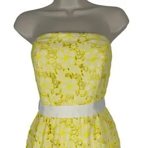 Lilly Pulitzer 90's Strapless Sienna Yellow Floral Eyelet Dress Size 2-Excellent pre-loved Condition