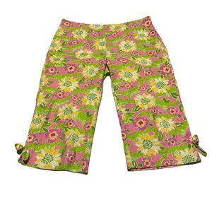 Lilly Pulitzer Vintage Captis Pants Size 12 Alligator Floral Print Textured Bows