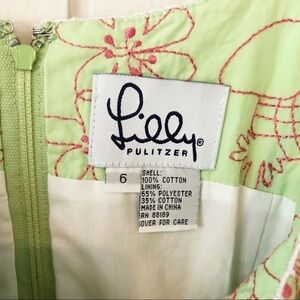 Vintage white tag Lilly Pulitzer bright green dress with embroidered pink pineapples and fruits