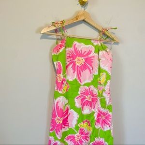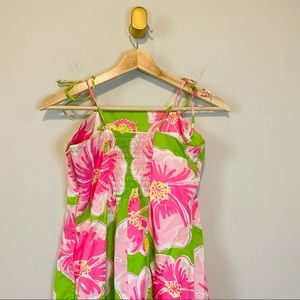 Lilly Pulitzer Vintage Green and Pink Hibiscus Tie Strap Dress Size 4 girls