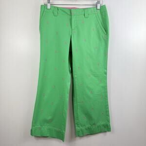 Lilly Pulitzer Vintage Palm Beach Fit Green Capri Pants Size 2 Pink Anchors